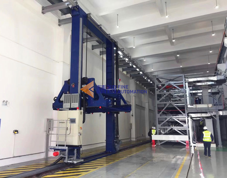 通過激光傳感器自動定位AGV的位置,實現(xiàn)精準對接,在換電過程中啟動自動跟隨系統(tǒng)實時調(diào)整換電機器人與AGV的相對位置關(guān)系,做到平順換電,快速換電。