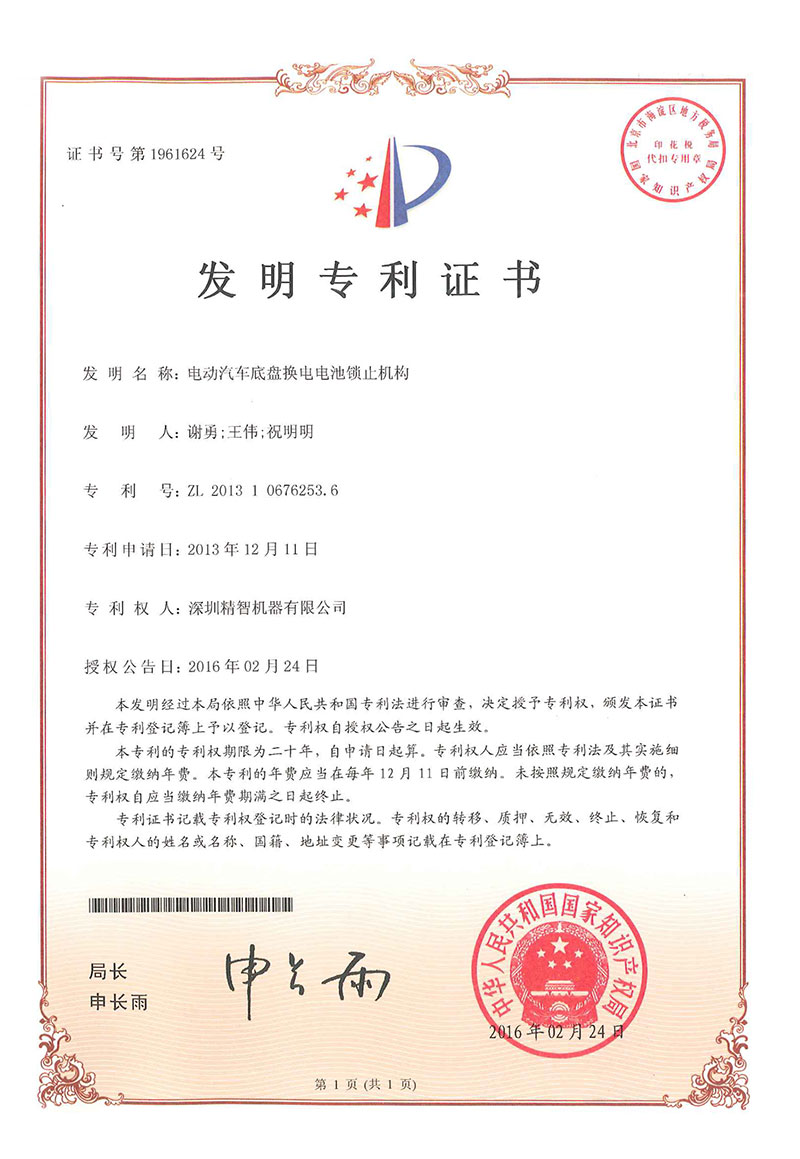 您現在的位置:首頁 > 關于精智 > 專利證書
